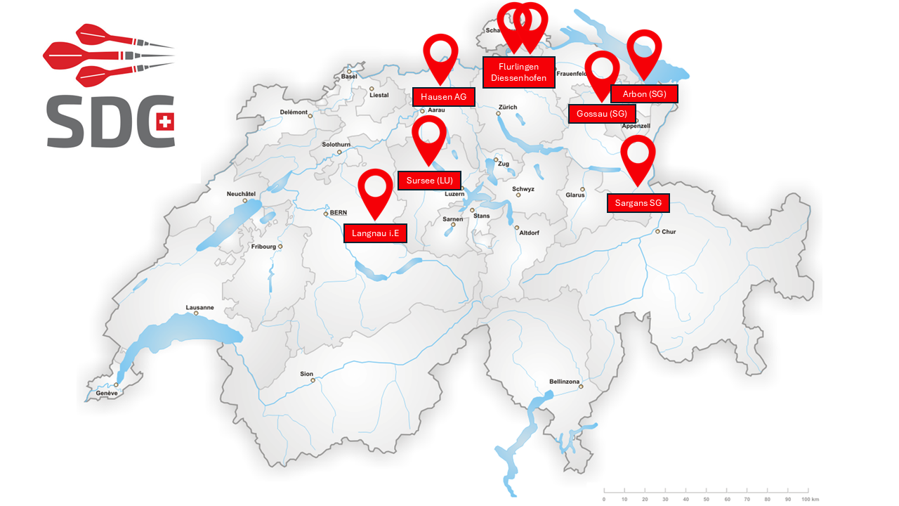 Auch im neuen Jahr wird die SDC an verschiedensten Standorte in der Deutschschweiz Turniere organisieren. Uns war es immer wichtig, moderne, grosse und schöne Turnierstätte auszuwählen. Beim Darts ist es wie beim Essen: "Das Auge isst mit." Mit dem Seeparksaal in Arbon und der Sportanlage Riet in Sargans kommen zwei einzigartige Turnierlocations zum neuen Turnierkalender hinzu. Dies sorgt nicht nur für mehr Abwechslung, sondern ermöglicht es auch uns, neue Spieler für unsere Turniere zu begeistern und damit auch die Dartsszene in der Schweiz weiterhin zu vergrössern.
